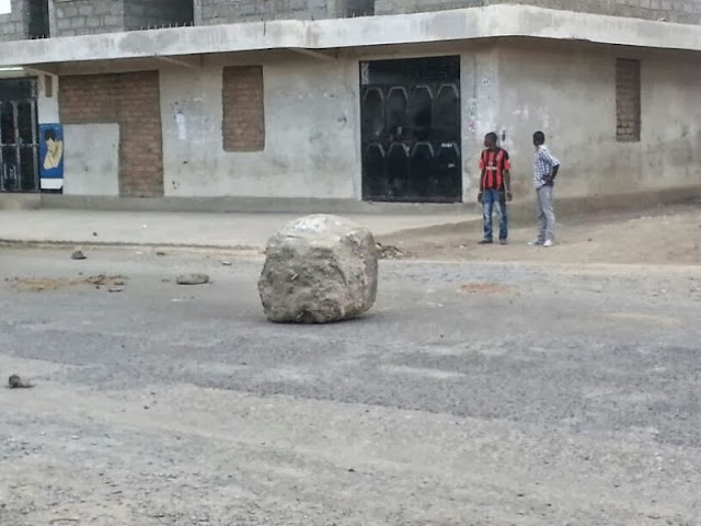 Jiwe kubwa likiwa limewekwa katika Barabara magari yasipite